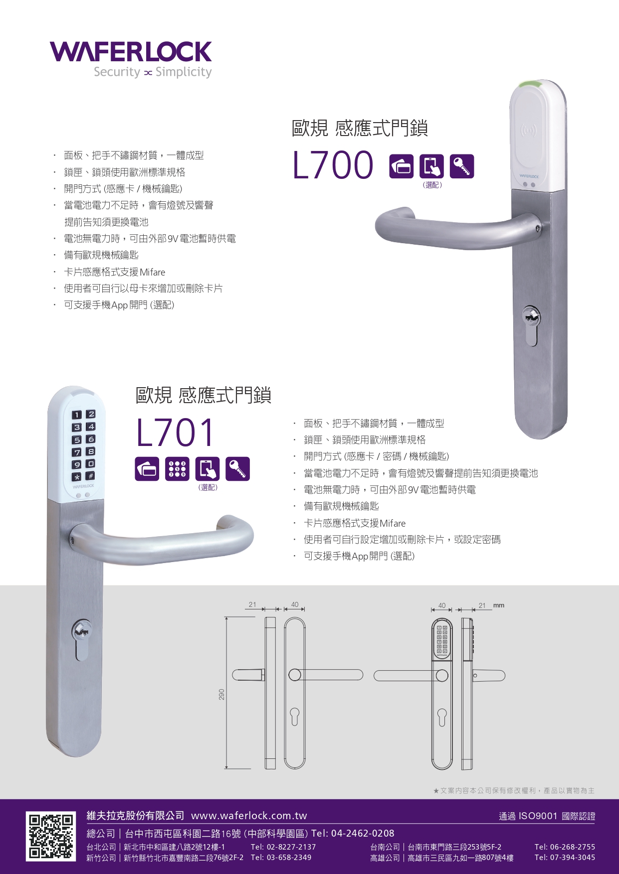 > 維夫拉克電子鎖-歐規 感應式門鎖 L700/L701