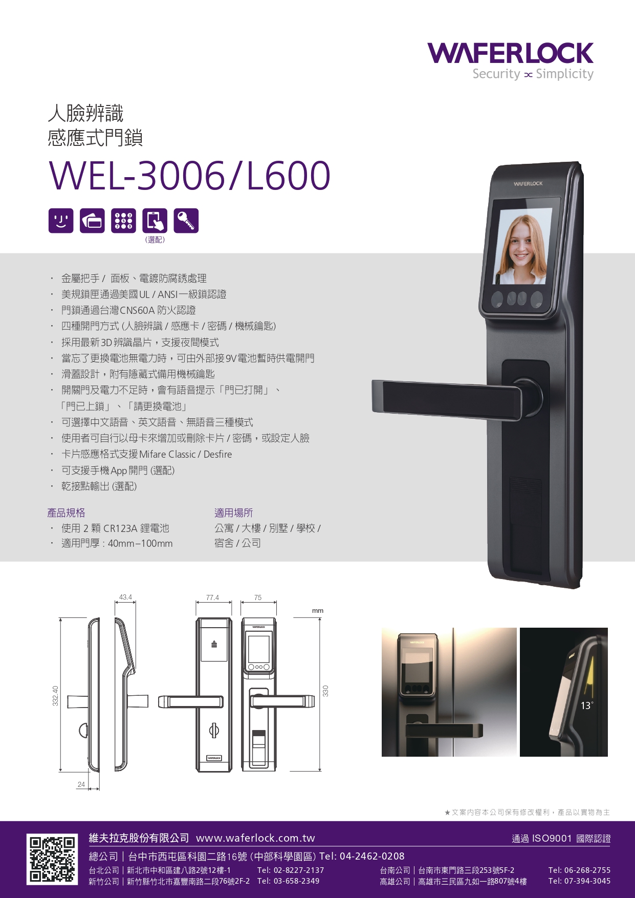 維夫拉克電子鎖-人臉辨識感應式門鎖 WEL-3006/L600